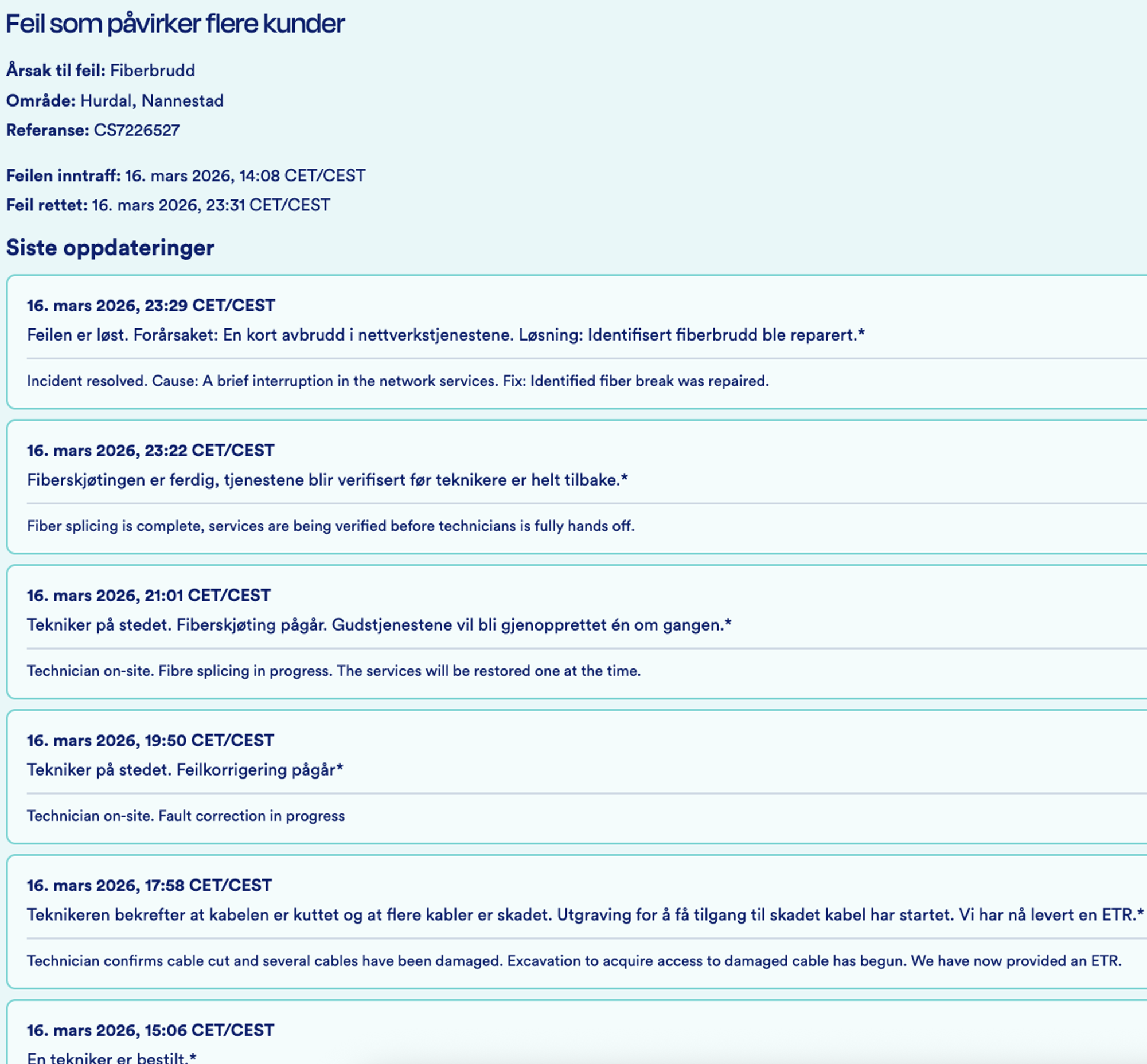 En teknisk feil førte til en svært kreativ oversettelse da fiberen røk i Hurdal.